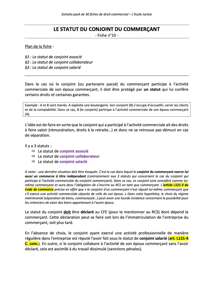 - Fiche n°10 : Le statut du conjoint du commerçant