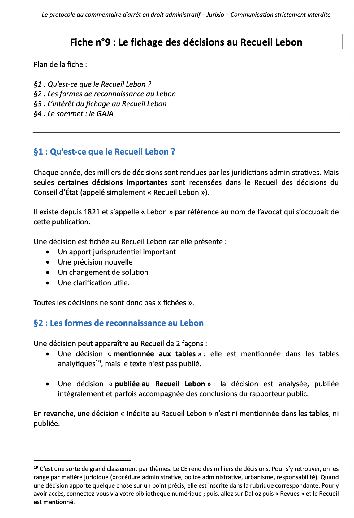 • Le fonctionnement du Recueil Lebon et du fichage des décisions
